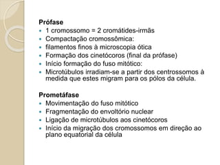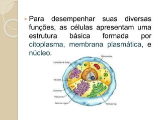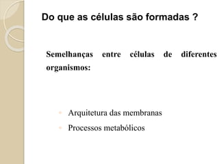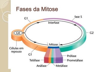 O documento aborda a citologia, detalhando a complexidade dos sistemas biológicos, a estrutura e função das células, incluindo a diferença entre células procarióticas e eucarióticas. Descreve também a constituição molecular das células, incluindo proteínas, lipídeos e ácidos nucleicos, além de explorar os processos de divisão celular, mitose e meiose. Por fim, menciona a variação genética durante a meiose e a importância dos diferentes tipos de células nos organismos.