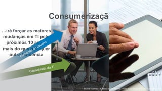 A apresentação discute a tendência da consumerização e como as empresas devem adotar estratégias de "Bring Your Own Device" (BYOD) para permitir que os funcionários usem seus próprios dispositivos de forma segura no trabalho. A virtualização de desktops e aplicações é apresentada como uma solução para permitir o acesso a qualquer dispositivo enquanto protege dados corporativos. Exemplos de como empresas implementaram com sucesso estratégias BYOD também são apresentados.