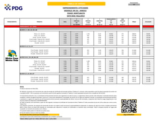 O documento lista tabelas de vendas de unidades imobiliárias do empreendimento Città Maris em Marituba/PA, com preços, parcelas de pagamento e condições de financiamento junto à Caixa Econômica Federal. As tabelas detalham os valores de venda e parcelamento para blocos de apartamentos, com variações de acordo com o andar e tamanho da unidade. O documento também apresenta notas gerais sobre prazos de conclusão da obra, responsabilidades do comprador e possibilidade de alteração dos valores listados.