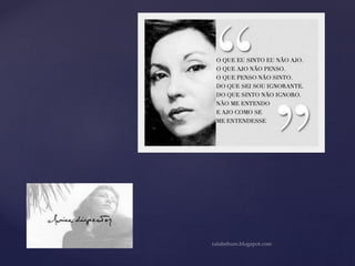 Clarice Lispector foi uma escritora modernista brasileira da terceira geração que usava técnicas como metalinguagem e digressões em seus trabalhos. Seus principais livros incluem Laços de Família e A Hora da Estrela, onde explorava temas existenciais através de personagens como Macabéa.