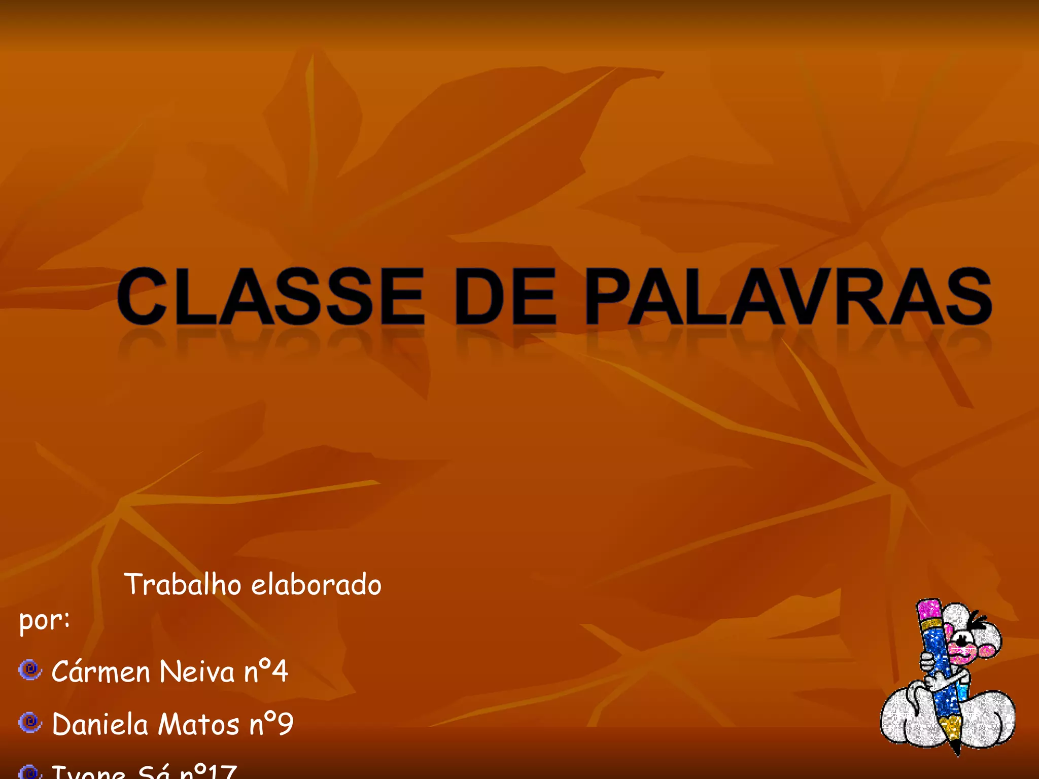 1) O documento discute as diferentes classes de palavras em português, incluindo nomes, adjetivos, determinantes, pronomes, verbos e interjeições.