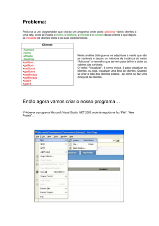 Pediu-se a um programador que cria-se um programa onde podia adicionar vários clientes a