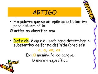 1) Artigo, numeral, pronome, verbo - definindo cada parte de fala e suas classificações.