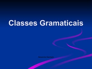 O documento discute as classes gramaticais da língua portuguesa. Explica que as palavras se dividem em classes de acordo com suas características e que o estudo dessas classes é importante para a compreensão e criação de textos, assim como peças se unem para formar um automóvel. As classes gramaticais são divididas em variáveis e invariáveis.
