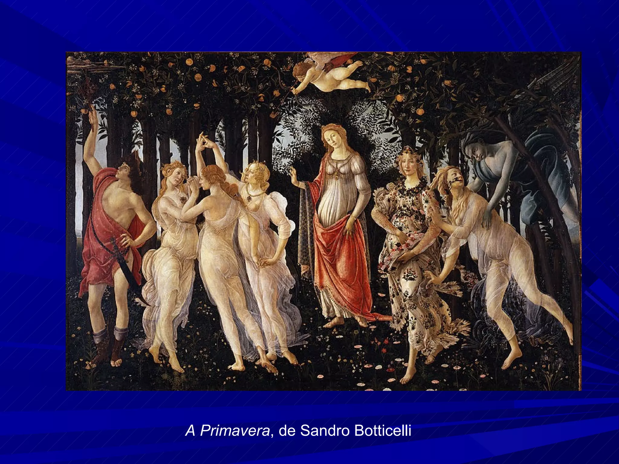 1. O documento apresenta obras-primas do Renascimento italiano, como A Primavera de Botticelli e A Escola de Atenas de Rafael.