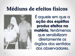 O documento classifica três tipos de fenômenos mediúnicos: mediunidade de efeitos inteligentes, psicografia e clarividência.