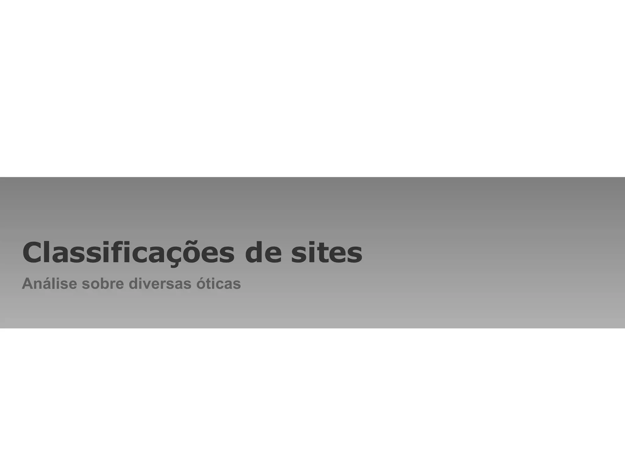 O documento discute a classificação de sites em diferentes categorias e como essas classificações evoluíram ao longo do tempo com o avanço da internet. Inicialmente, sites eram categorizados como institucionais, midiáticos, aplicativos e bancos de dados. Mais tarde, novas categorias surgiram, como sites comerciais, portais de conteúdo, sites de relacionamento e educacionais. O documento também reflete sobre profissões relacionadas ao desenvolvimento de sites.