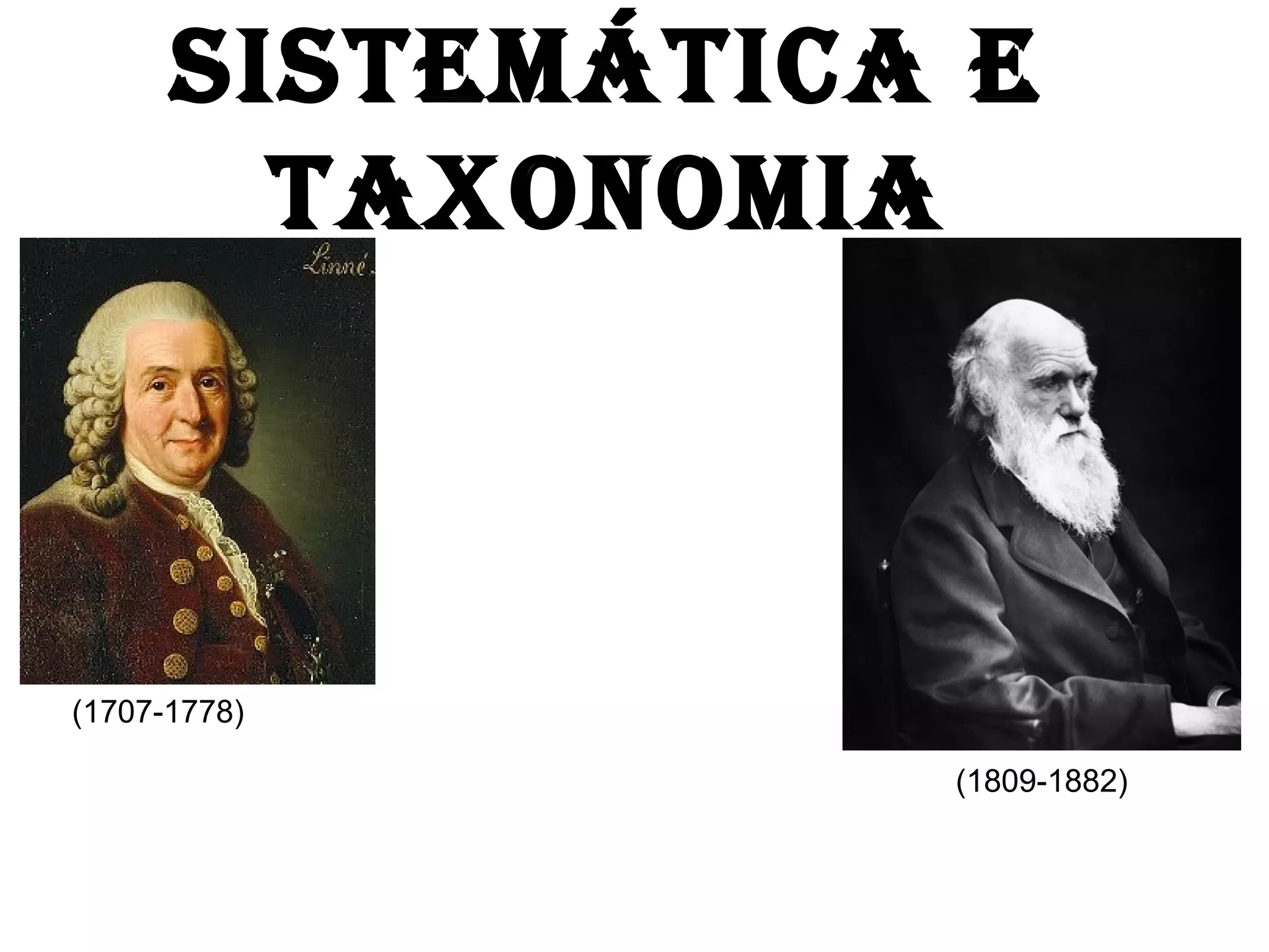 O documento discute a sistemática e taxonomia de organismos vivos. Apresenta as teorias não evolucionistas de fixismo e criacionismo, contrastando com a teoria evolucionista de Darwin após sua viagem no Beagle. Também descreve a classificação científica de organismos em taxons hierárquicos como reino, filo, classe etc. e a nomenclatura binomial em latim introduzida por Lineu.