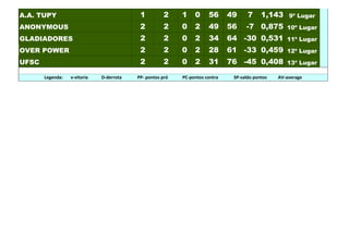 1) O documento apresenta as classificações de duas séries, A e B, de uma liga de basquete.