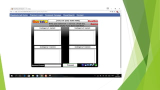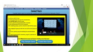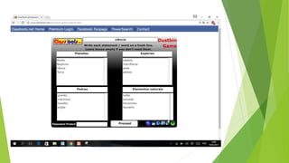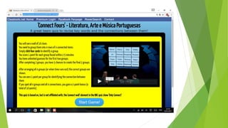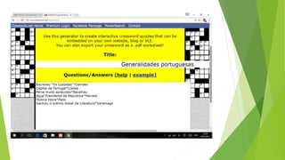 O documento descreve aplicações online chamadas ClassTools que permitem criar jogos, quizzes e outras atividades educacionais para despertar a atenção dos alunos, como o Random Name Picker, 3D Gallery, Pac Man e geradores de palavras cruzadas e lixeira.