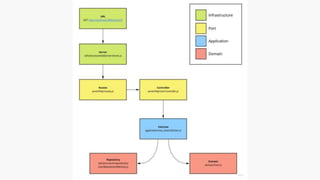 [1] A apresentação discute os princípios da Clean Architecture e como aplicá-la em projetos NodeJS, incluindo a separação das camadas de domínio, casos de uso, interfaces e infraestrutura. [2] É explicado como mapear o contexto do domínio usando Context Mapping e como desenvolver uma linguagem ubíquita para melhor comunicação entre times. [3] Referências bibliográficas e artigos sobre arquitetura limpa, domain-driven design e padrões relacionados são fornecidos.