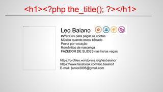 O documento fornece dicas sobre como desenvolver projetos profissionais usando WordPress de forma limpa e organizada. Ele destaca a importância de planejamento, seguir padrões de codificação, usar a hierarquia de arquivos corretamente, funções nativas, modularização e evitar preguiça.