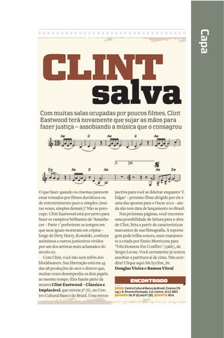 O documento descreve uma mostra de filmes do ator e diretor Clint Eastwood que será realizada no Centro Cultural Banco do Brasil, com o objetivo de oferecer ao público uma alternativa de qualidade em meio a muitos filmes duvidosos nos cinemas. A mostra contará com 43 produções marcantes de Eastwood e servirá como uma prévia enquanto seu próximo filme, "J. Edgar", ainda não teve data de lançamento definida no Brasil.