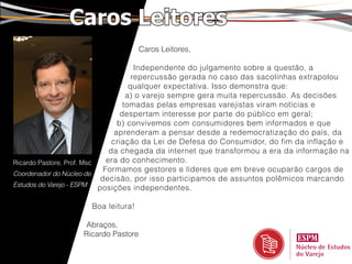 O documento discute as estratégias de varejistas como Walmart, Carrefour e Pão de Açúcar para melhorar suas operações no Brasil e aumentar as vendas. Também aborda a venda de eletrodomésticos pela rede Coop e os planos da Procter & Gamble de cortar custos.