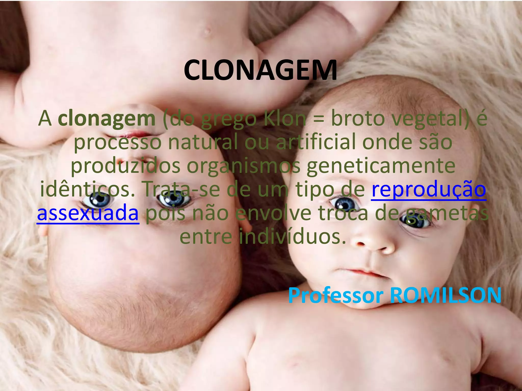 O documento discute as vantagens e desvantagens da clonagem. Entre as vantagens listadas estão a possibilidade de reverter ataques cardíacos, permitir que casais inférteis tenham filhos e curar doenças como leucemia. As desvantagens incluem baixa eficiência da técnica, altas taxas de mortalidade fetal e problemas de saúde nos clones como síndrome do filhote grande.