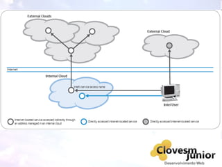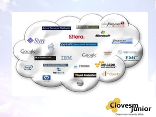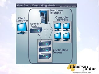 O documento descreve a história e conceitos da computação em nuvem. Começa com uma breve linha do tempo desde 1960 e como a ideia evoluiu ao longo dos anos, com empresas como Amazon e Microsoft lançando serviços em nuvem em 2006-2010. Em seguida, explica o que é computação em nuvem, seus tipos, principais características e modelos, além de por que as empresas usariam esses serviços e como eles são tarifados.