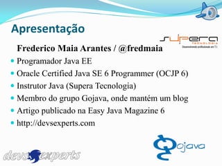 O documento apresenta Frederico Maia Arantes e suas qualificações como programador Java. Em seguida, fornece uma introdução ao conceito de computação em nuvem, discutindo seus principais tipos (IaaS, SaaS, PaaS), vantagens como escalabilidade e elasticidade, e desafios como a ausência de joins e transações. Exemplos de serviços em nuvem como Google Docs, Dropbox e Amazon Web Services são apresentados.