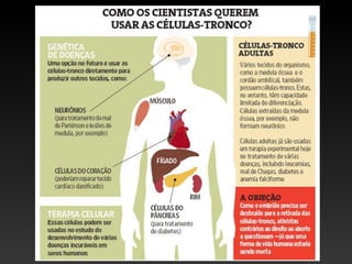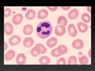 O documento discute as principais células do sistema imunológico, incluindo granulócitos, células mononucleares, células dendríticas, linfócitos e células NK. Todas essas células originam-se da medula óssea e desempenham papéis importantes tanto na resposta imune inata quanto na resposta adaptativa ou específica.