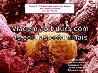 Este documento discute um projeto de estudantes sobre células estaminais. Ele descreve os tipos principais de células estaminais, onde podem ser encontradas, como são usadas atualmente em tratamentos médicos e suas aplicações futuras potenciais. Além disso, aborda questões éticas relacionadas à pesquisa com células estaminais embrionárias.
