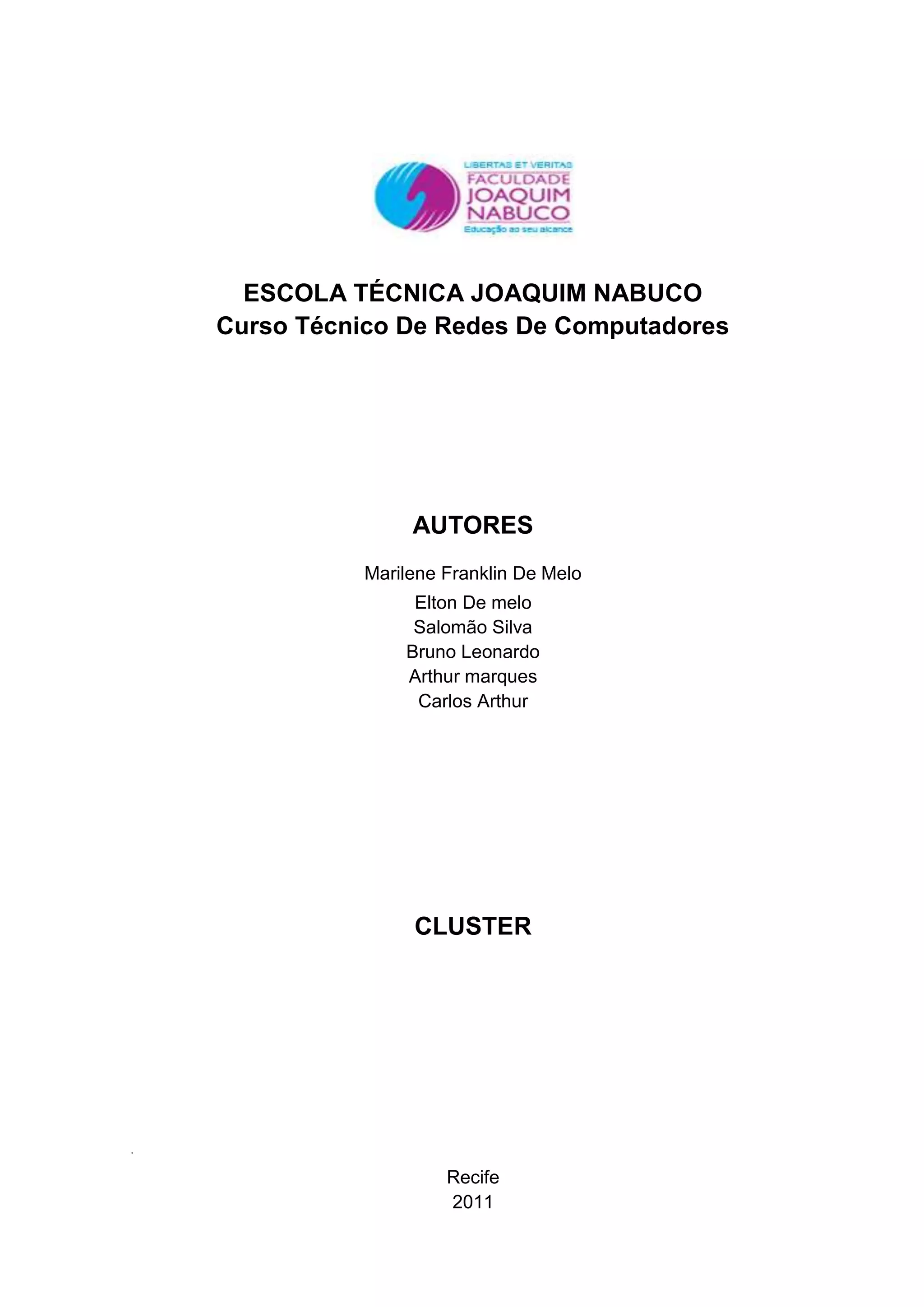 Cluster é um grupo de computadores que trabalham juntos para fornecer recursos de alta disponibilidade e balanceamento de carga como um único sistema. O serviço de Balanceamento de Carga de Rede (NLB) melhora a disponibilidade de aplicativos de servidor como web, FTP e firewall distribuindo a carga entre os nós. Clusters podem ser configurados de várias formas como cluster de nó único, cluster com quorum único ou cluster principal de conjunto de nós.