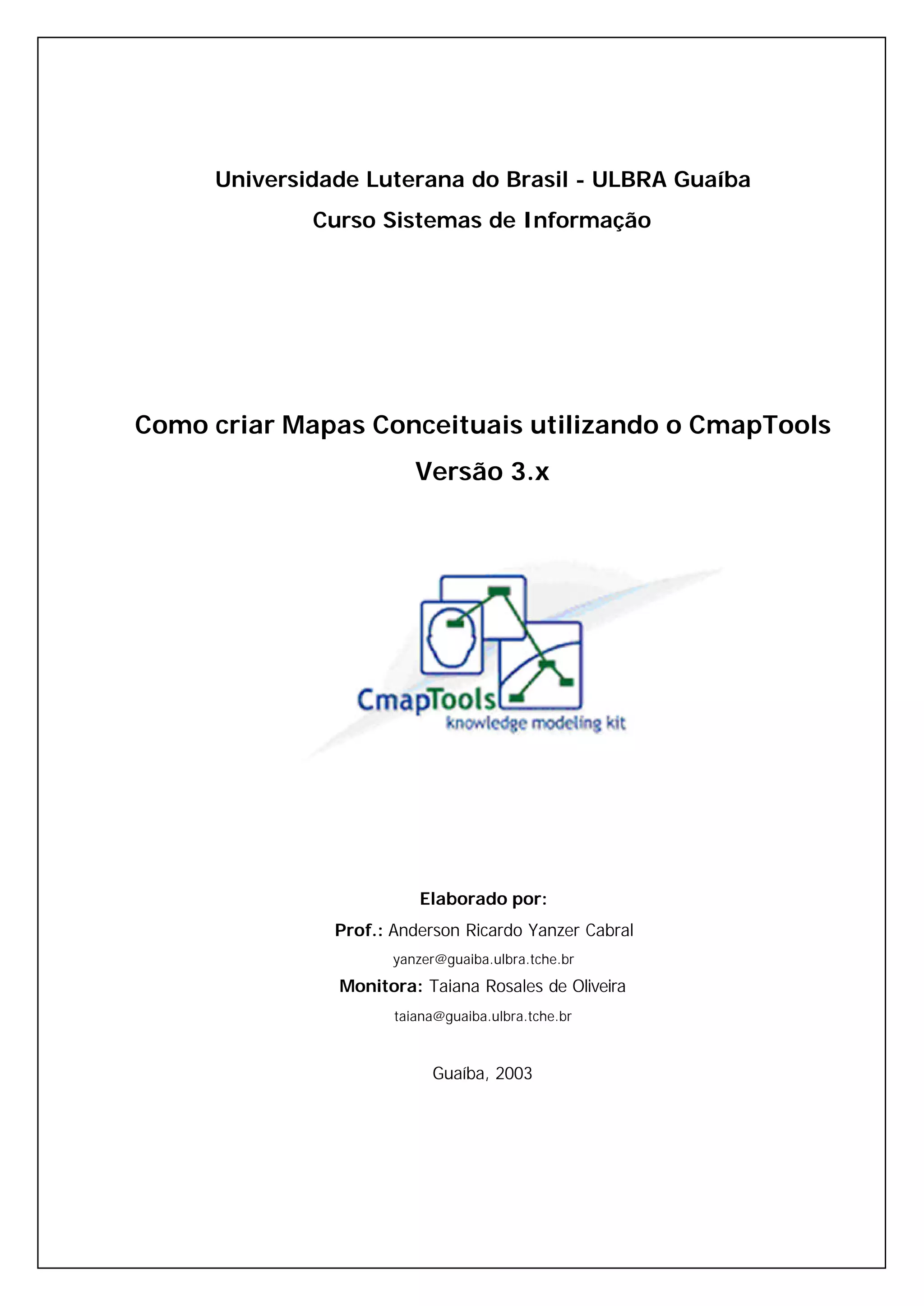 Este documento fornece instruções sobre como criar e editar mapas conceituais usando o software CmapTools. Ele explica como abrir o programa, iniciar um novo mapa, adicionar conceitos e ligações, salvar o mapa, formatá-lo e colaborar em mapas online.