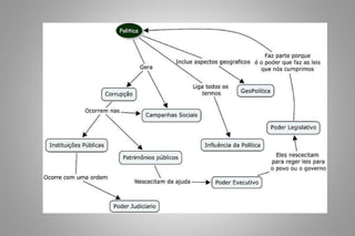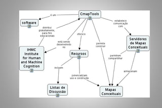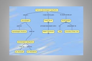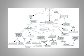 O documento descreve o que são mapas conceituais, suas origens e características. Mapas conceituais são representações gráficas que indicam relações entre conceitos ligados por palavras e representam uma estrutura hierárquica de conceitos. Eles decorrem da teoria de aprendizagem de David Ausubel e foram desenvolvidos por Joseph Novak e Derek Gowin.