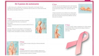 O documento discute a prevenção e detecção precoce do câncer de mama, incluindo estatísticas sobre a doença, fatores de risco, exames de rastreamento e tratamentos. Ele também descreve a campanha Outubro Rosa, que visa conscientizar sobre a importância da luta contra o câncer de mama.