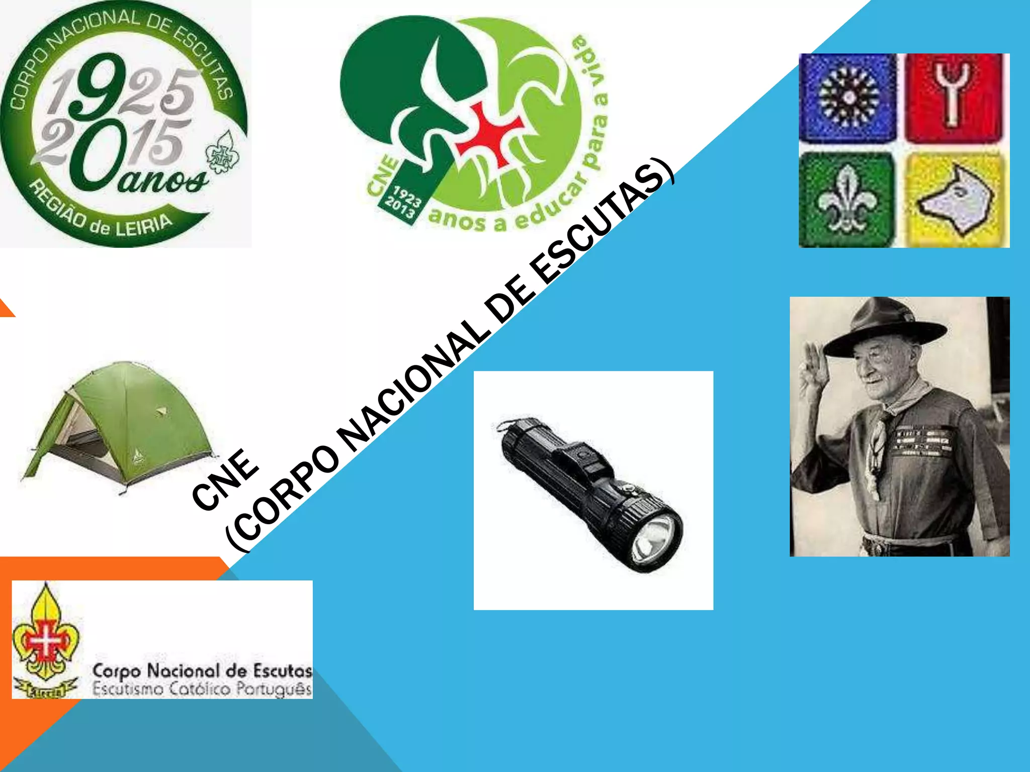 O Corpo Nacional de Escutas foi fundado em Braga em 1923 por D. Manuel Vieira de Matos e Dr. Avelino Gonçalves após observarem o escotismo em Roma. O movimento cresceu rapidamente pelo país e contava com mais de 60.000 membros em 1940. Nas décadas seguintes, o CNE continuou a se expandir e modernizar, introduzindo novas secções e métodos de formação.