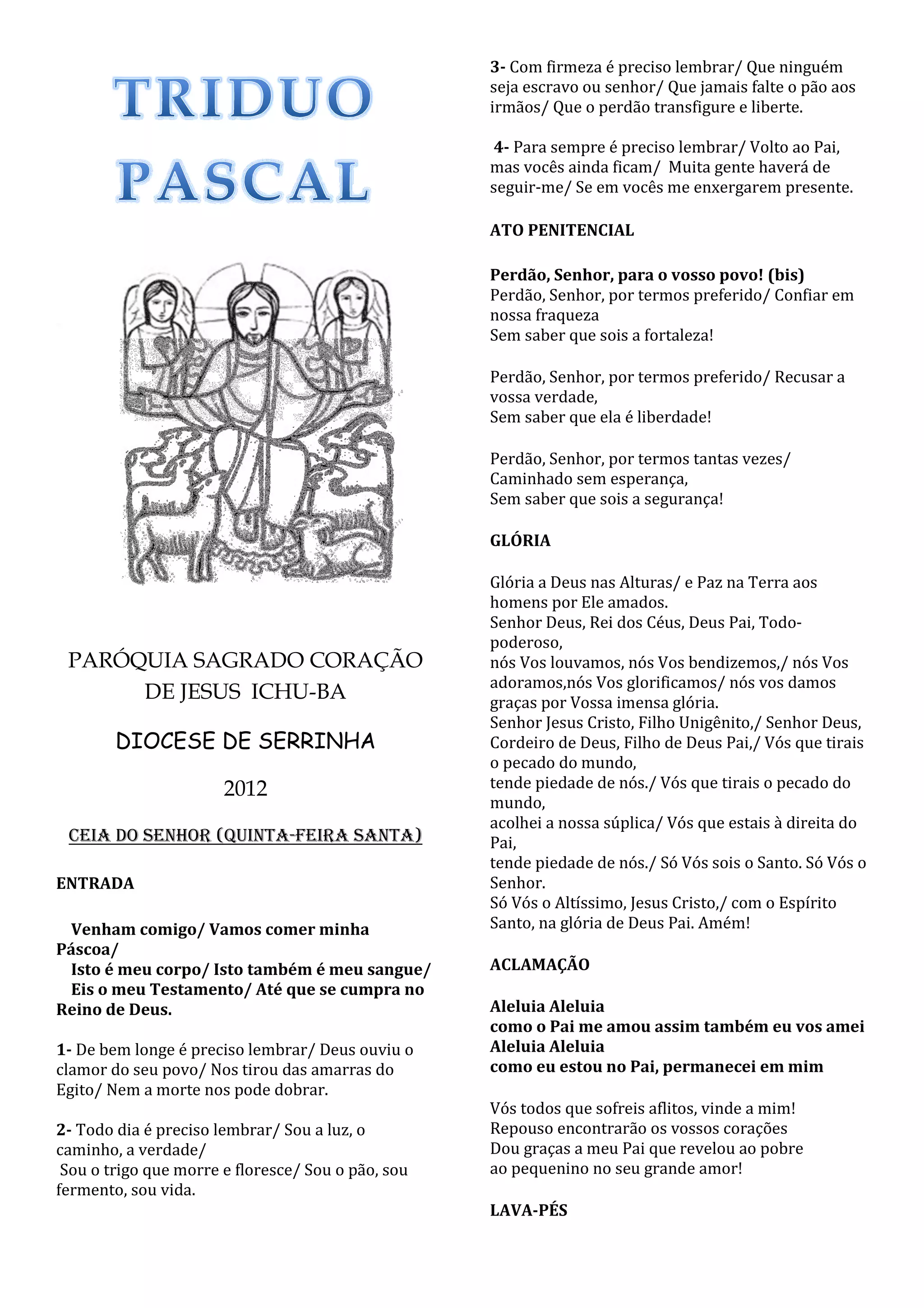 Este documento é uma liturgia para a Ceia do Senhor (Quinta-Feira Santa). Contém leituras bíblicas, cânticos e orações relacionados à Última Ceia de Jesus com os apóstolos e ao lavatório dos pés.