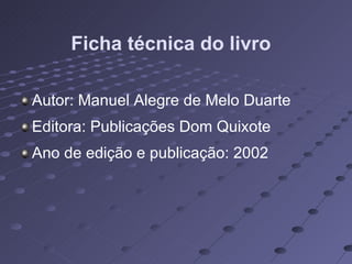 Este livro conta a história de Kurika, um cão da raça pagneul-breton que fez parte da família de Manuel Alegre. Kurika era desobediente, rebelde e caprichoso, parecendo querer ser como os humanos. Devido à personalidade única de Kurika, Manuel Alegre escreveu esta narrativa sobre a lealdade e amizade que um cão pode dar. A morte de Kurika deixou um vazio no coração da família, que o tratava como membro da família.