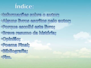 O documento fornece informações biográficas sobre uma figura política e cultural, destacando sua educação em Direito, ativismo político e participação em eleições. Também menciona suas contribuições literárias, incluindo uma lista de publicações de poesia e ficção. Além disso, inclui links para recursos adicionais sobre suas obras e a sua biografia.