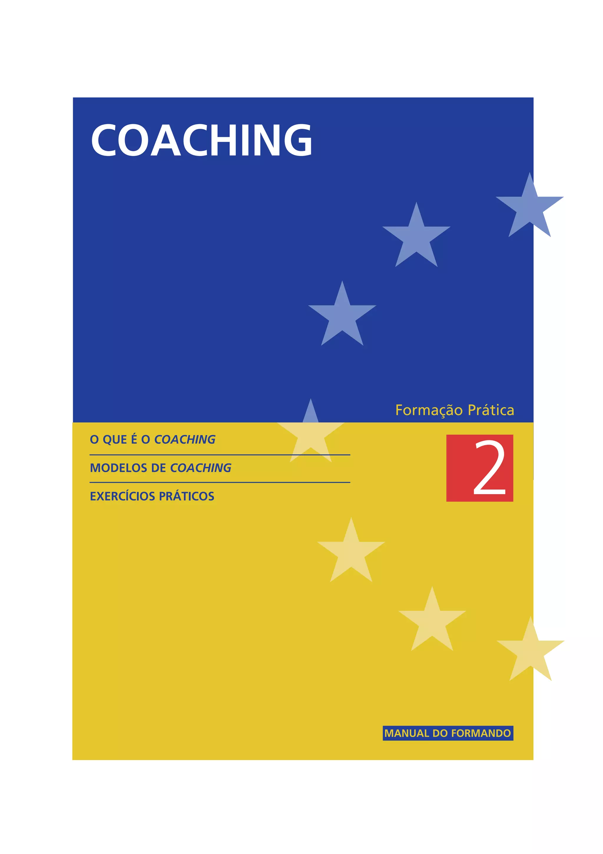 Este manual apresenta ferramentas de coaching para estimular o desenvolvimento de competências e melhorar o desempenho individual e organizacional. Aborda conceitos como os níveis de aprendizagem, as competências do processo de coaching e os benefícios deste. Apresenta também um modelo de coaching composto por seis fases - identificação de necessidades, estabelecimento de padrões de desempenho, planeamento, motivação, implementação e revisão - visando aplicar técnicas de coaching no contexto organizacional.
