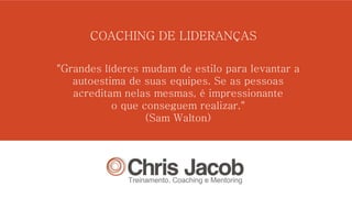 Este documento discute coaching de lideranças. Ele descreve como líderes precisam mudar seu estilo para elevar a autoestima de suas equipes e como coaching pode ajudar líderes a assumir responsabilidades e maximizar seu potencial. O documento também discute os benefícios do coaching para organizações, incluindo aumento de produtividade e desenvolvimento de lideranças e equipes.