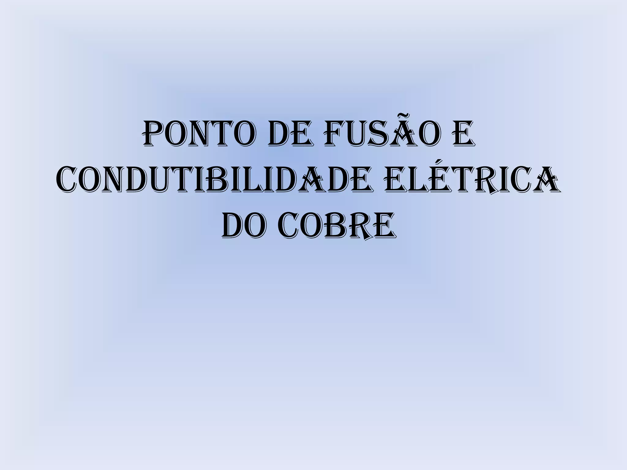 O cobre é um dos metais mais antigos usados pelo homem, com mais de 10.000 anos de uso. Possui uma cor avermelhada e está na mesma família da prata e ouro na tabela periódica. O cobre tem a segunda maior condutividade elétrica e térmica, perdendo apenas para a prata, e seu ponto de fusão é de aproximadamente 1.085°C quando puro.