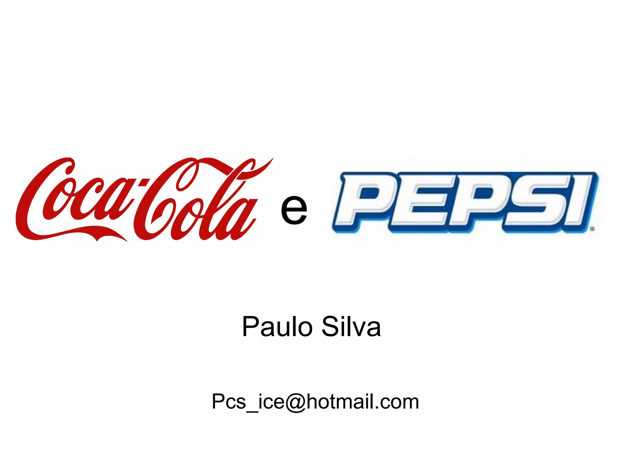 O documento compara as empresas Coca-Cola e Pepsi, suas histórias, produtos, preços, embalagens, marketing e distribuição. A Coca-Cola foi fundada em 1886 e a Pepsi em 1898, sendo ambas líderes globais de refrigerantes. A Coca-Cola possui maior faturamento e valor de marca, enquanto a Pepsi investe em renovação de marca.
