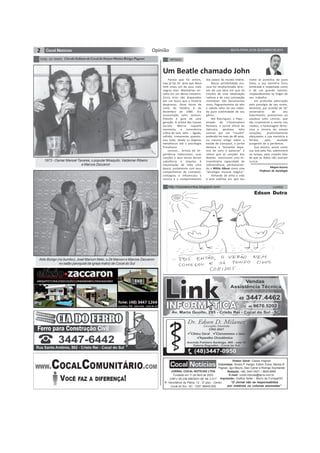 O jornal relata a abertura do evento natalino Cocal Luz 2014, com a chegada criativa do Papai Noel de parapente, a entrega da chave da cidade e o acendimento das luzes. Também destaca diversas atrações musicais que animaram o público de mais de 6 mil pessoas no evento de abertura.