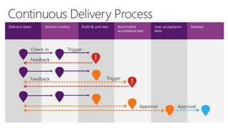 O documento aborda estratégias de Continuous Delivery (CD) destacando a importância da integração contínua (CI) e das práticas DevOps para permitir liberações de software a qualquer momento. São apresentadas diferentes estratégias de branching, além da necessidade de colaboração e automação em todo o processo de entrega. Ferramentas como Azure DevOps são sugeridas para otimizar planejamento, colaboração e entrega ágil.