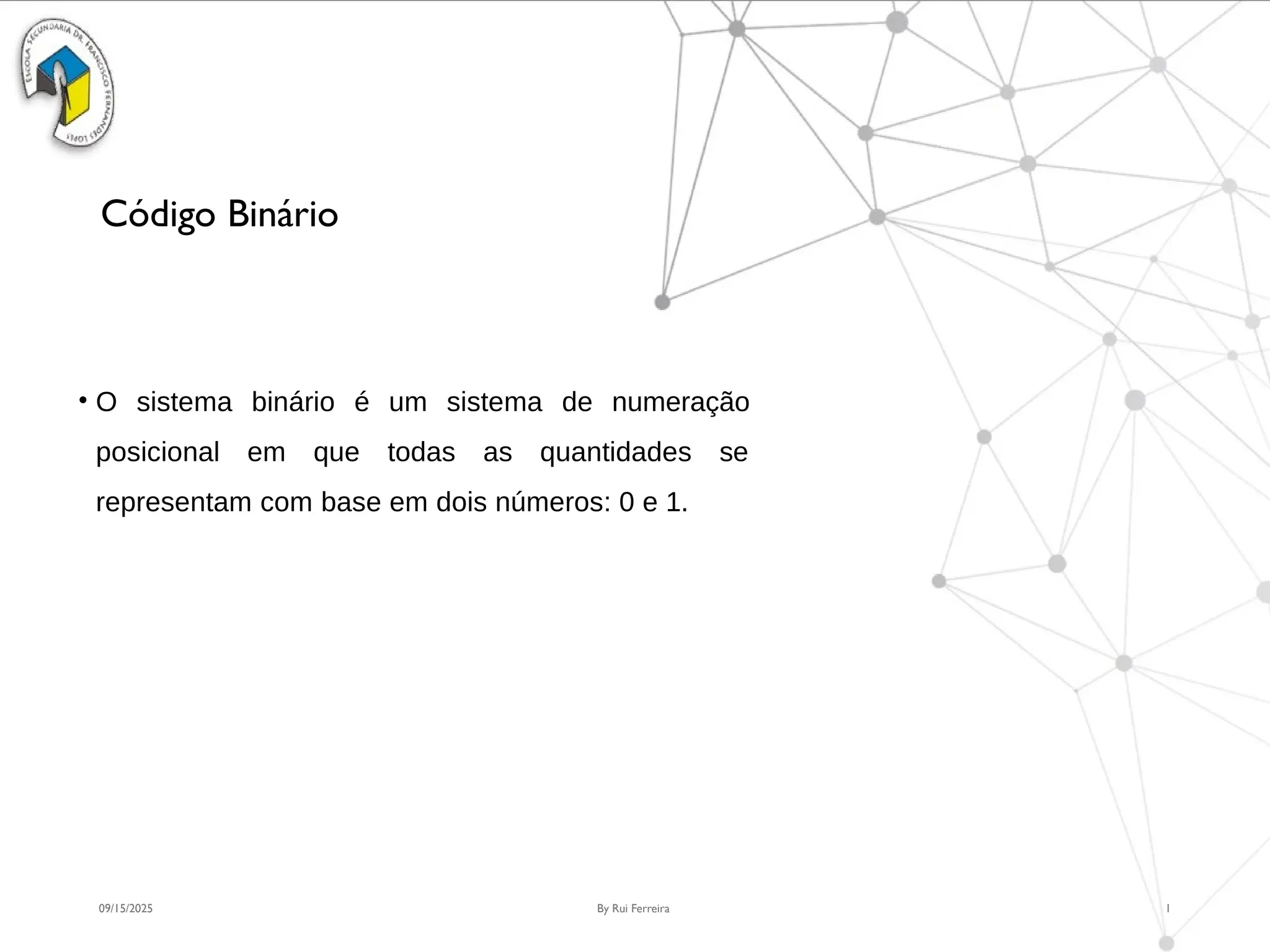 apenas dois dígitos, ou dois estados (sim e não, verdadeiro e falso, tudo ou nada, 1