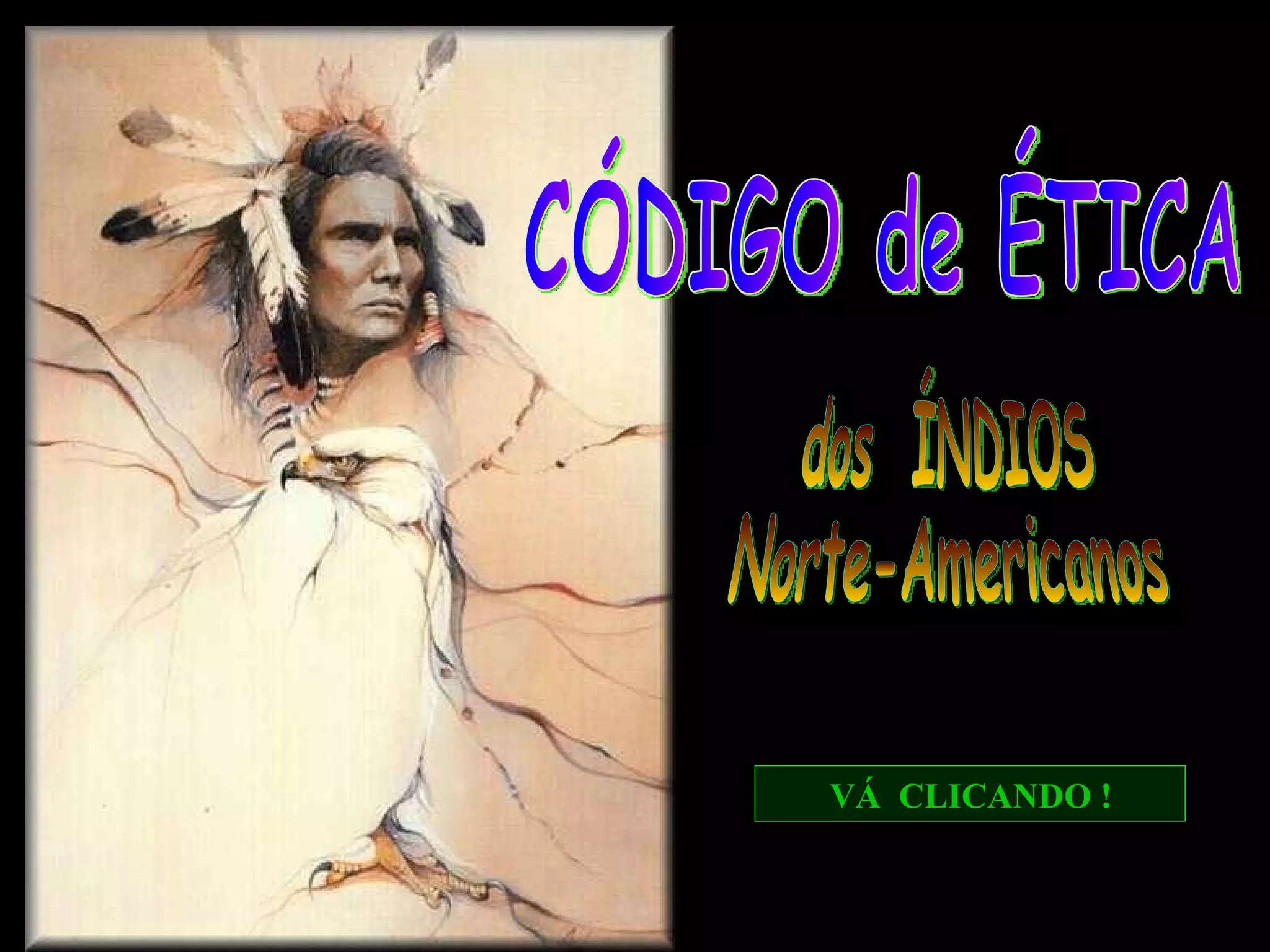 Este documento apresenta um código de ética baseado nos ensinamentos espirituais de várias tribos indígenas norte-americanas. Ele enfatiza a importância da oração, tolerância, autoconhecimento, hospitalidade, respeito pela natureza e por todas as formas de vida, honestidade e compartilhamento.