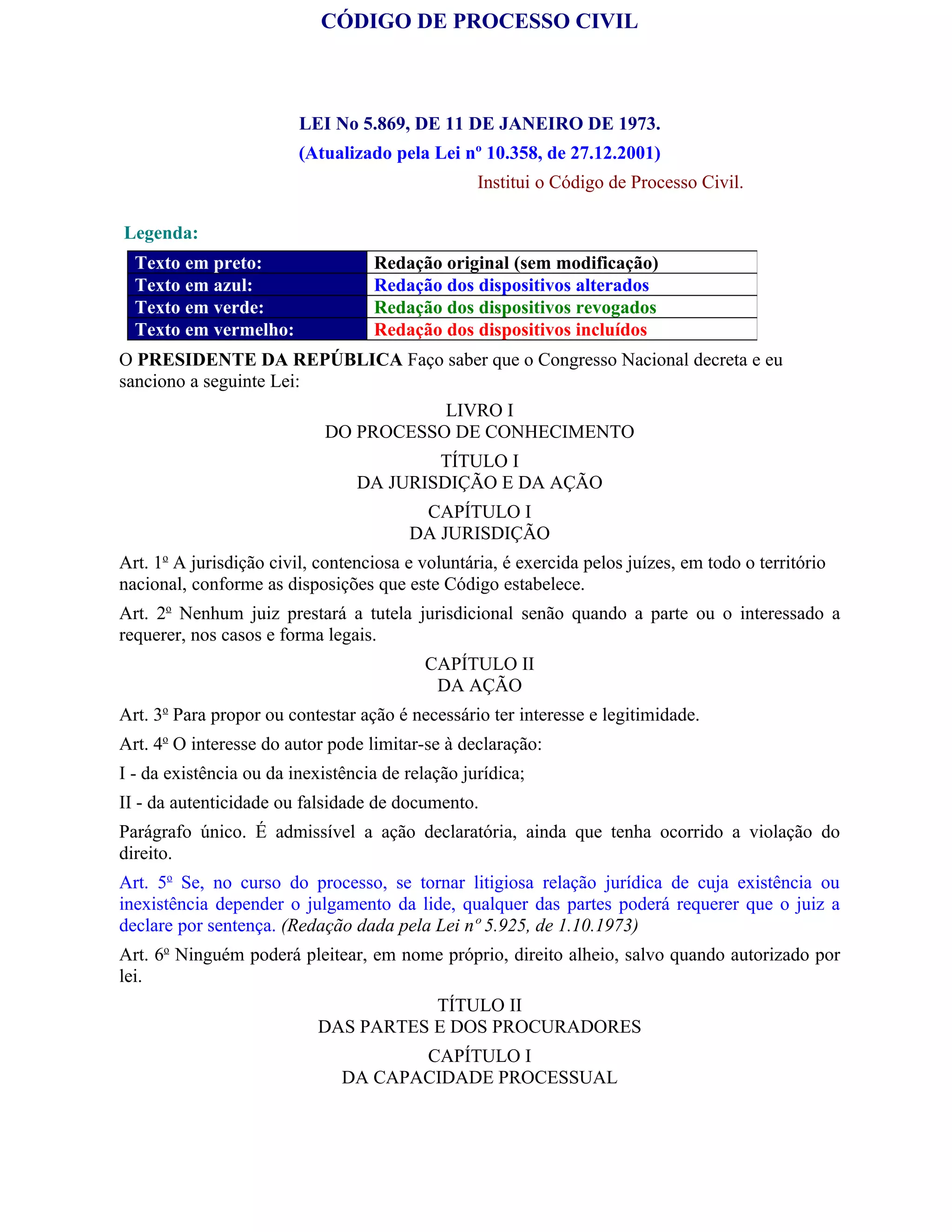 LEI No 5.869, DE 11 DE JANEIRO DE 1973.