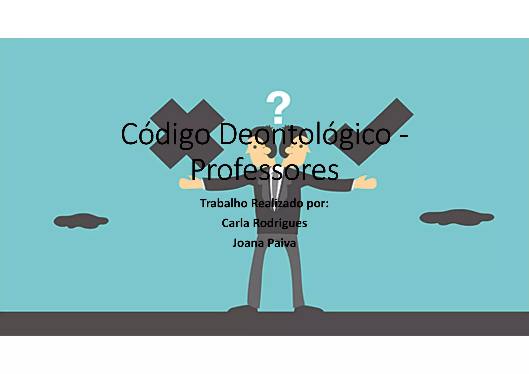 1) O documento discute a importância de um código deontológico para a profissão docente em Portugal, notando que atualmente não existe um código formal.
