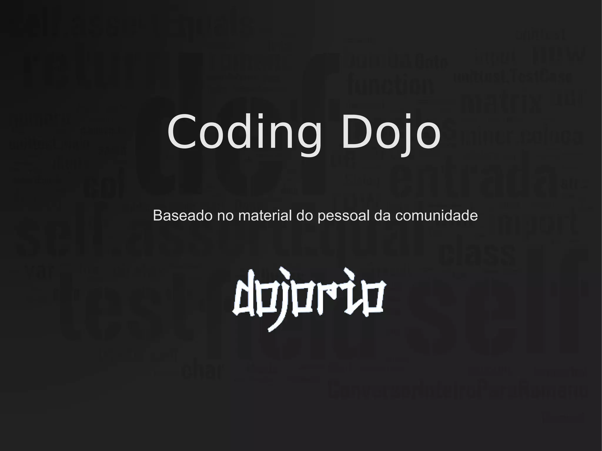Coding Dojo é um local onde pessoas se reúnem para praticar programação de forma colaborativa e não competitiva. Os participantes trabalham em pares por turnos curtos para escrever testes, codificar e refatorar um problema, com o objetivo de aprender continuamente em um ambiente seguro e inclusivo.