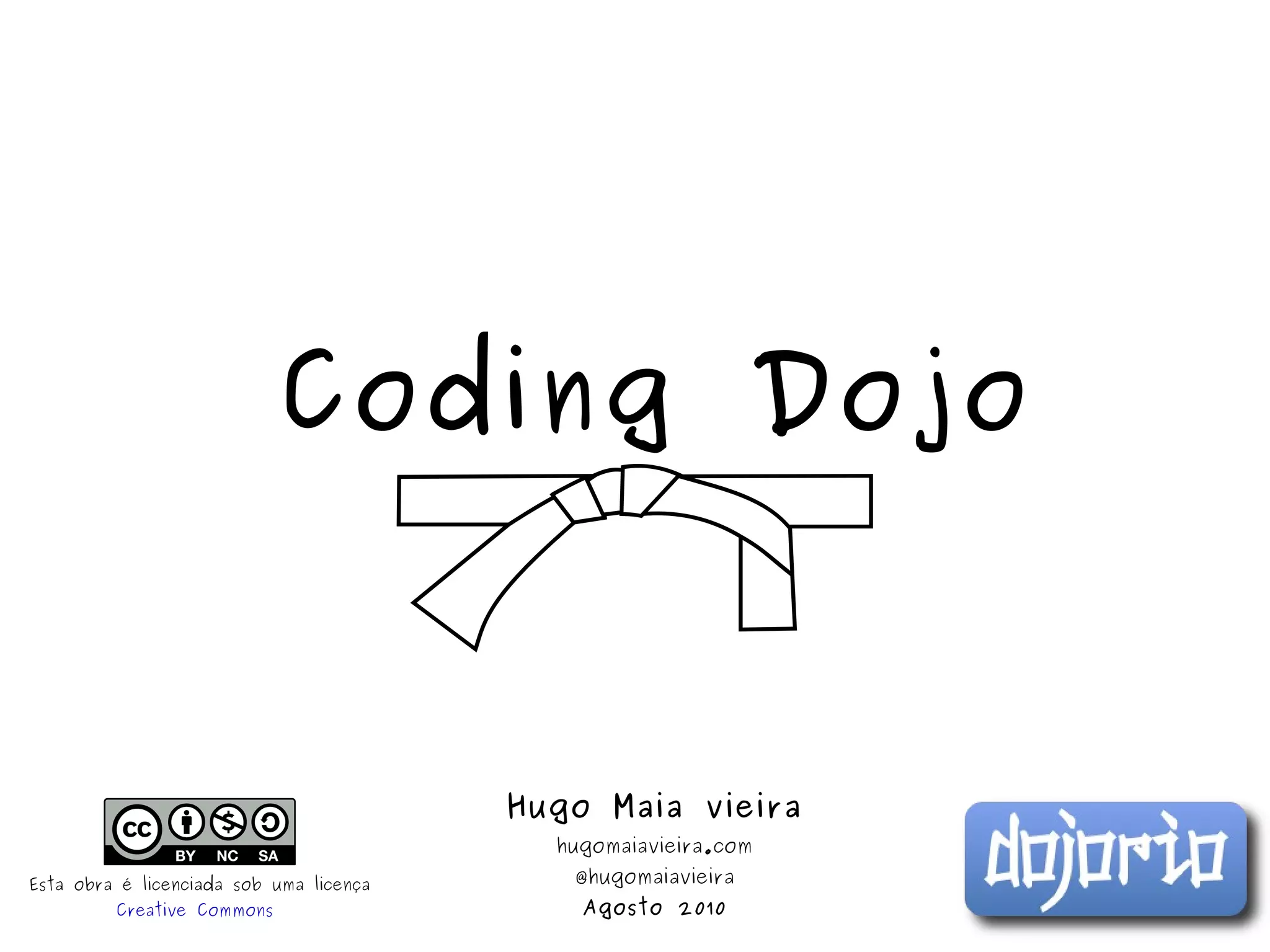 O documento descreve o que é um Coding Dojo, que é um evento de programação colaborativa onde programadores se reúnem para praticar e aprender novas técnicas de programação em um ambiente descontraído sem competição. O objetivo é promover a colaboração, o aprendizado contínuo e o desenvolvimento de códigos de melhor qualidade através de técnicas como testes automatizados e refatoração.