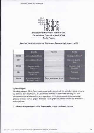 Programação da Gincana