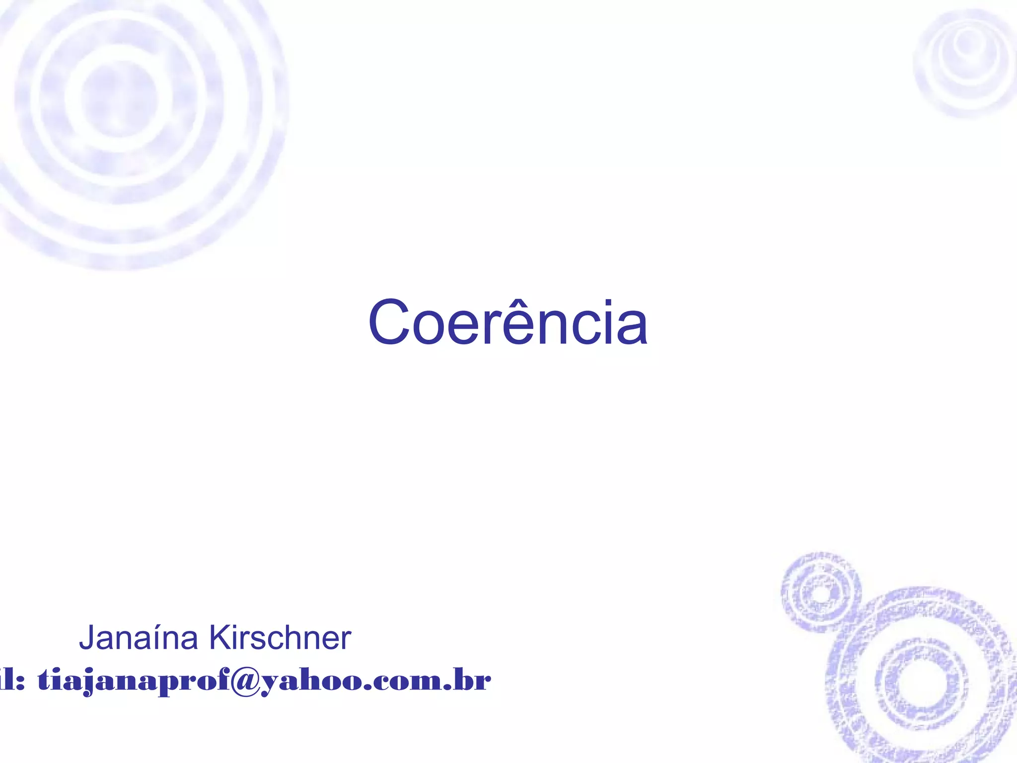 O documento discute três aspectos que contribuem para a coerência de um texto: 1) repetição de elementos para desenvolvimento linear; 2) ausência de contradições internas; 3) relacionamento entre os fatos expressos.