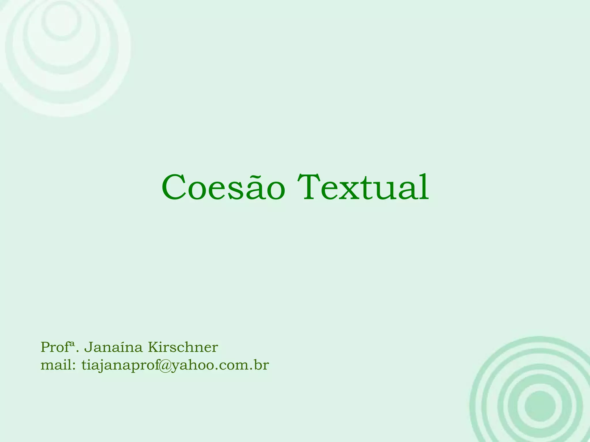 O documento discute três tipos de coesão textual: reiteração, associação e conexão. A reiteração ocorre pela retomada ou substituição de segmentos textuais. A associação ocorre pela ligação semântica entre palavras. A conexão ocorre pela ligação entre termos, orações e parágrafos por meio de conjunções e preposições.