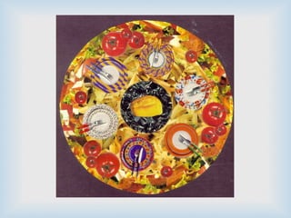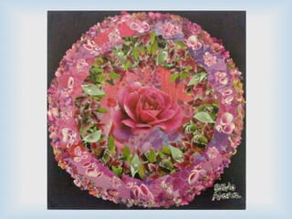 O documento discute a técnica artística da colagem, descrevendo seu uso pelo cubismo e artistas como Picasso e Braque. Explica os tipos de colagem figurativa e abstrata e dá exemplos de artistas como Matisse e Silvio Alvarez que usaram a colagem em suas obras.