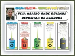 A coleta seletiva envolve a separação de materiais recicláveis como papel, plástico, metal e vidro na fonte geradora para evitar contaminação e facilitar a reciclagem. Existem diferentes modalidades de coleta como porta-a-porta, postos de entrega voluntária e em instituições. A reciclagem traz benefícios ambientais como redução do lixo nos aterros e da poluição, além de economizar recursos naturais e gerar empregos.