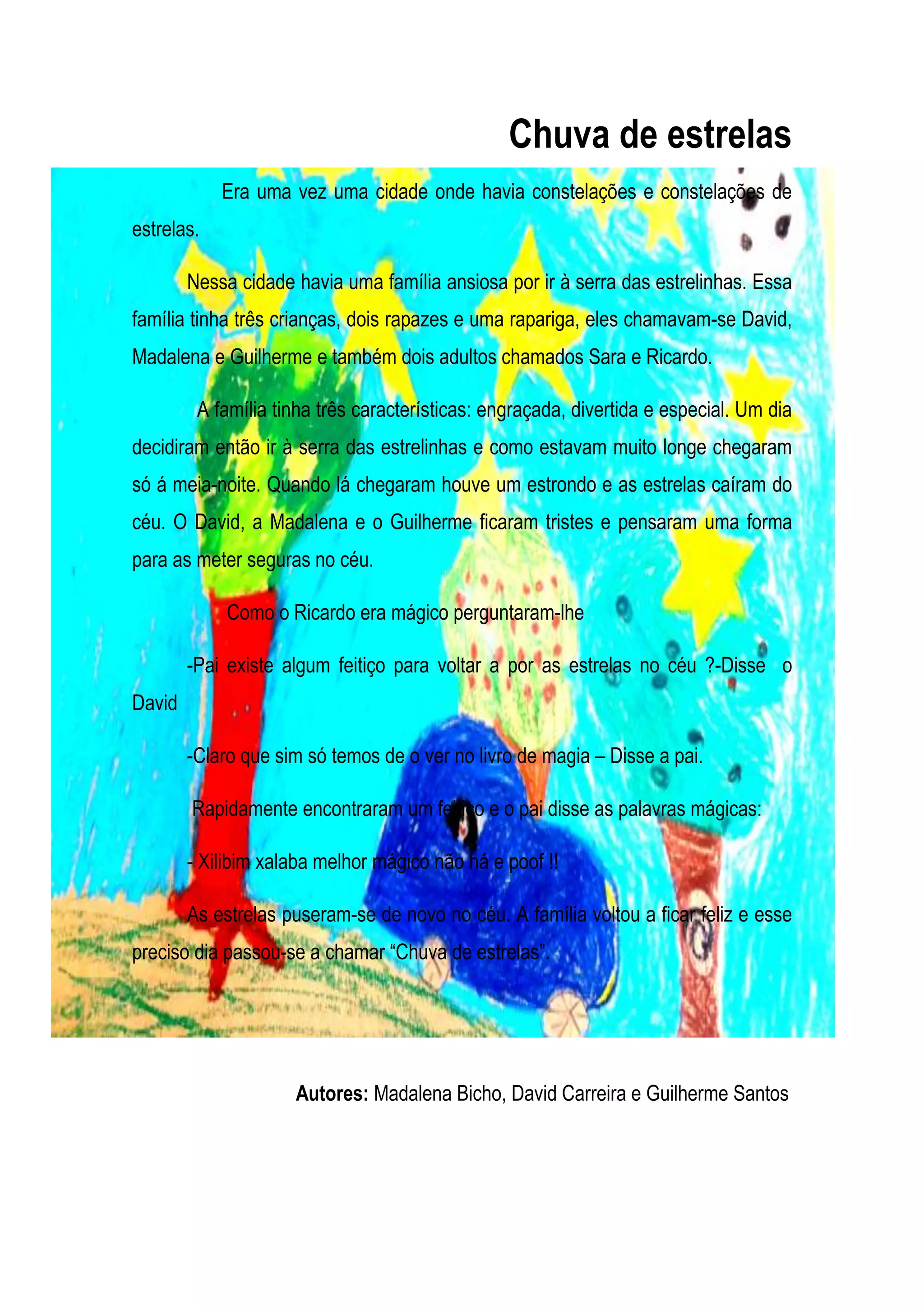 Este texto conta a história de dois amigos, Vasco e Tiago, que gostam de jogar futebol. No dia seguinte ao treino, os amigos ficam ansiosos para o grande jogo entre seus times, Tires vs Estoril. Após uma boa jogada coletiva, Vasco marca o único gol da vitória. No final, fazem uma festa para comemorar o triunfo.