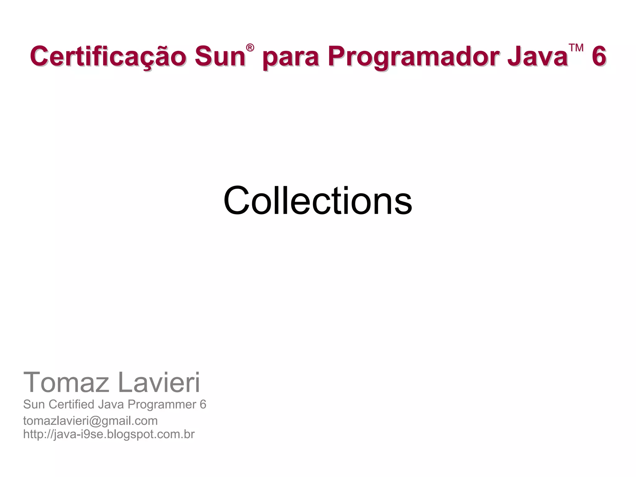 Este documento fornece uma introdução às coleções no Java, incluindo: